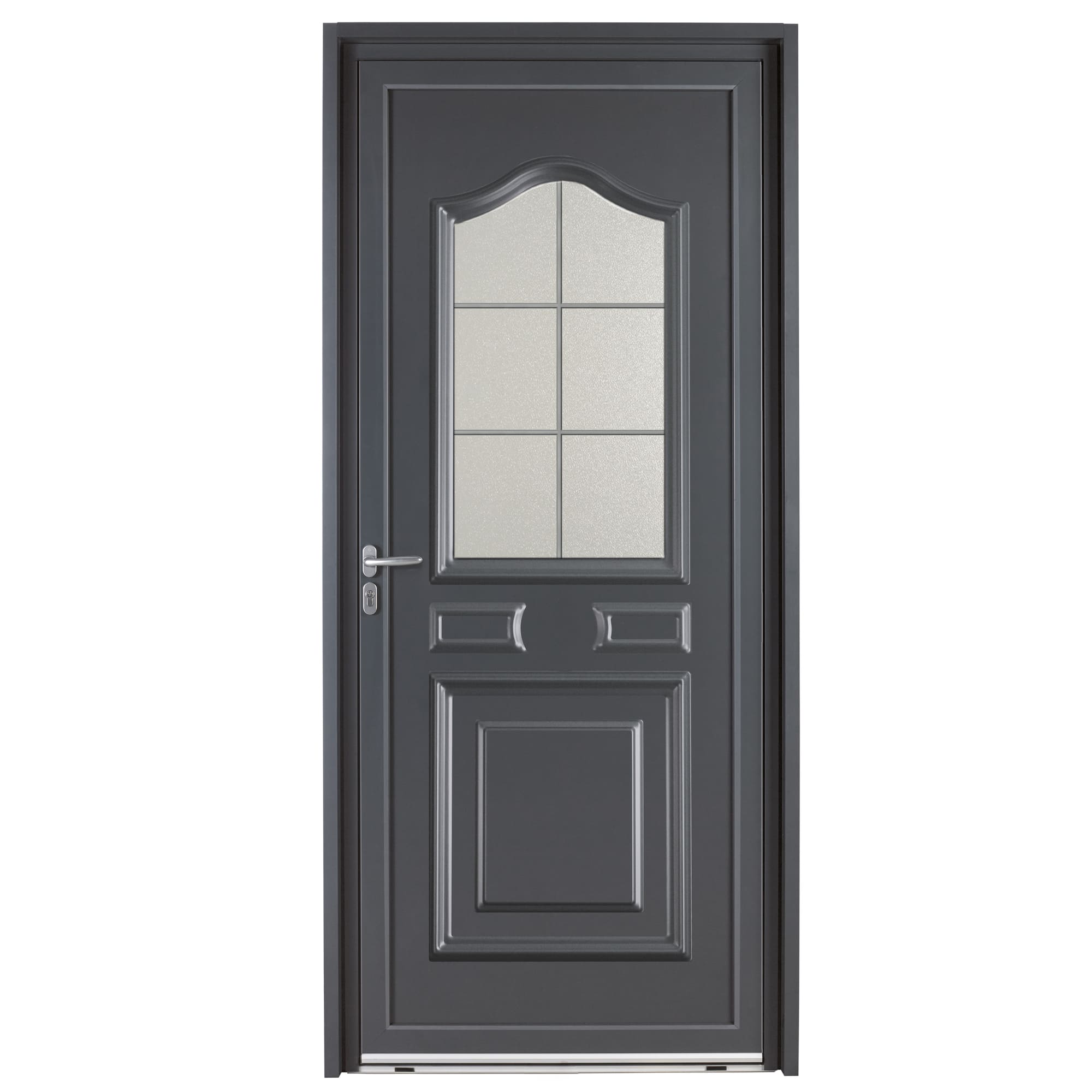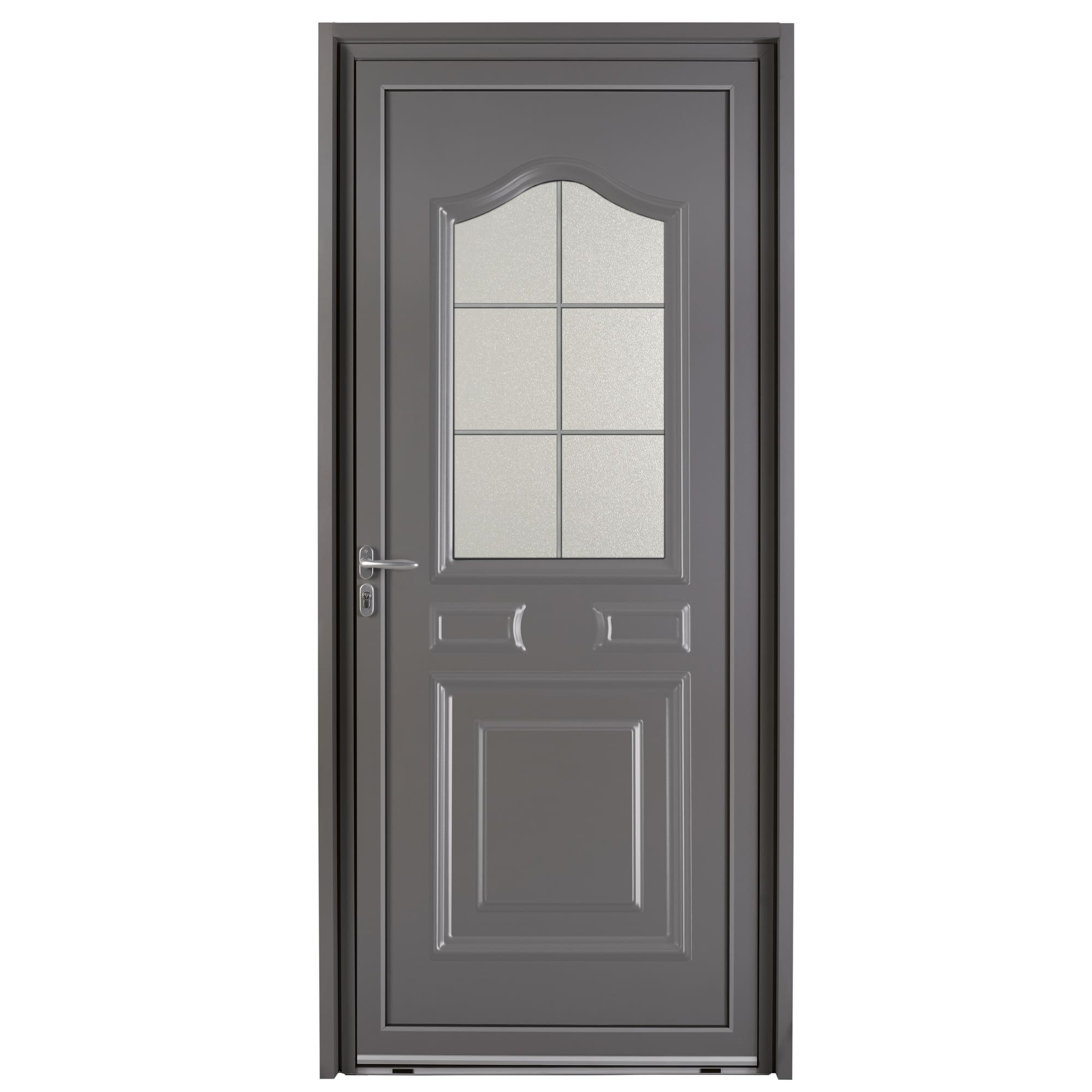 Le modèle de porte d’entrée aluminium Guisane est équipé d’un triple vitrage feuilleté avec petits bois incorporés.