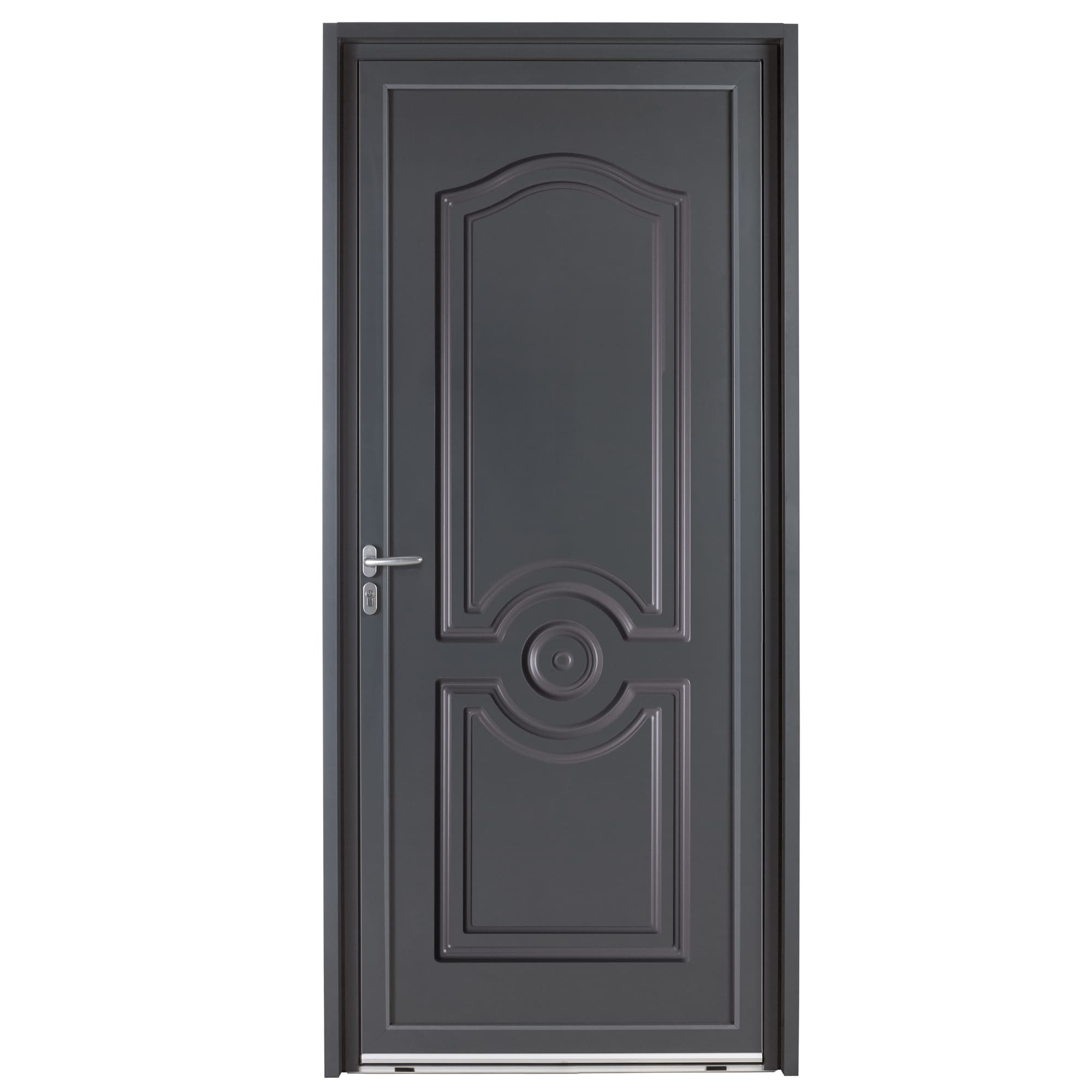 Le modèle Thouet est une porte d’entrée en aluminium au style classique affirmé, reconnaissable à ses moulures élégantes et à son décor central circulaire qui structure la façade avec caractère. Son design plein, sans vitrage, met en valeur des lignes équilibrées et une esthétique intemporelle, idéale pour renforcer le cachet de l’entrée tout en offrant une parfaite intimité.