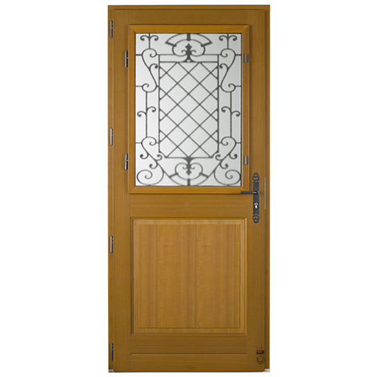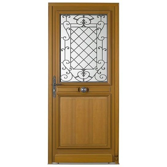 Cornelière, grâce à sa grille, apportera son élégance aux maisons de style. Vitrée à mi-corps, cette porte d’entrée bois illuminera votre entrée. Selon votre préférence optez pour la noblesse du chêne ou la chaleur du moabi. Son châssis ouvrant, indépendant de la grille, permettra une ventilation appréciable sans compromettre la sécurité de votre logement.