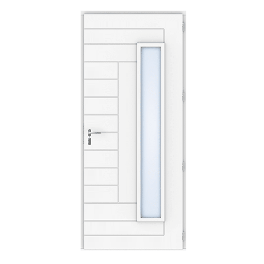 La porte d’entrée en bois Tibidy apporte caractère et originalité à votre logement grâce à ses rainures horizontales et son vitrage grande hauteur sur la partie gauche. Ce modèle de portes Bois Atlantiques se décline en 2 couleurs contemporaines : Blanc RAL 9016 et Gris RAL 7016. Avec un Ud = 1.2, profitez d’une bonne isolation thermique pour votre maison, en été comme en hiver.
