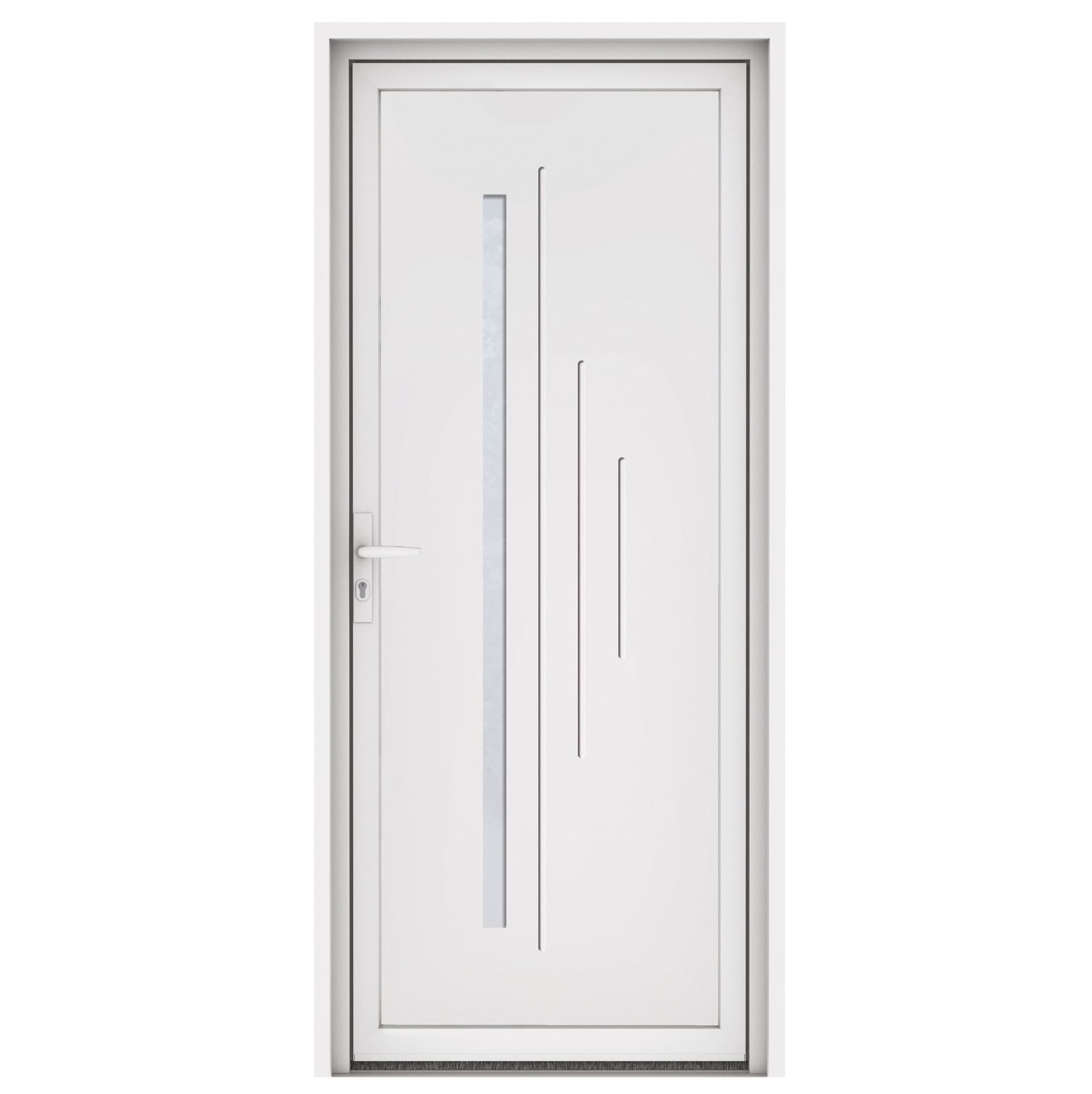 Avec son vitrage vertical étroit et allongé, accompagné de trois rainures fines de hauteurs différentes, Newton joue sur la verticalité. Une porte PVC moderne qui apporte une touche de lumière et un dessin très architectural.